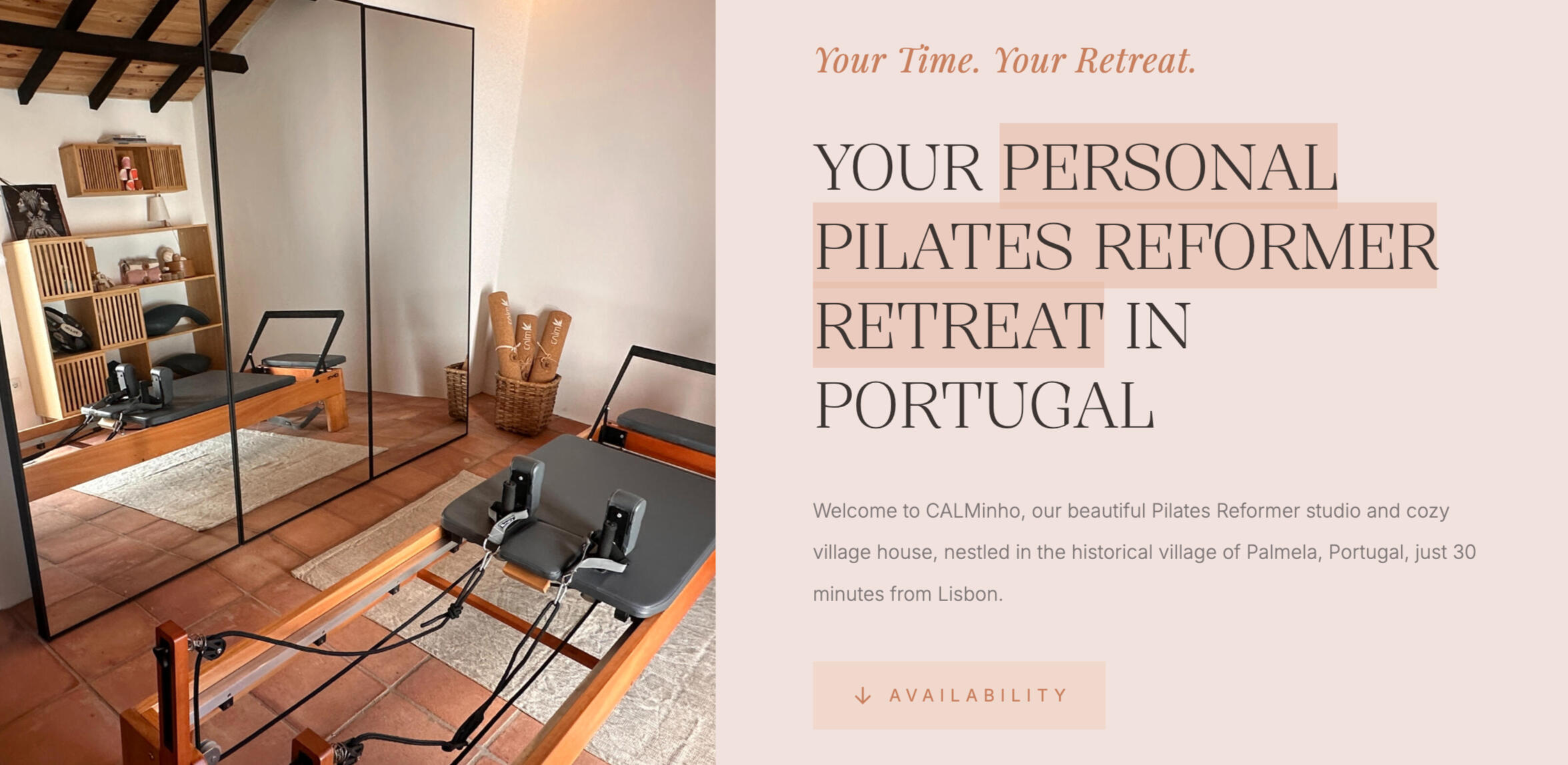 While CALM itself is not yet built, you can already get a glimpse of what a Private Pilates Holiday might look and feel like. Visit CALMinho - the 'little CALM' and book your private Reformer Pilates Retreat in Palmela, just a stone throw away from the project site of CALM.